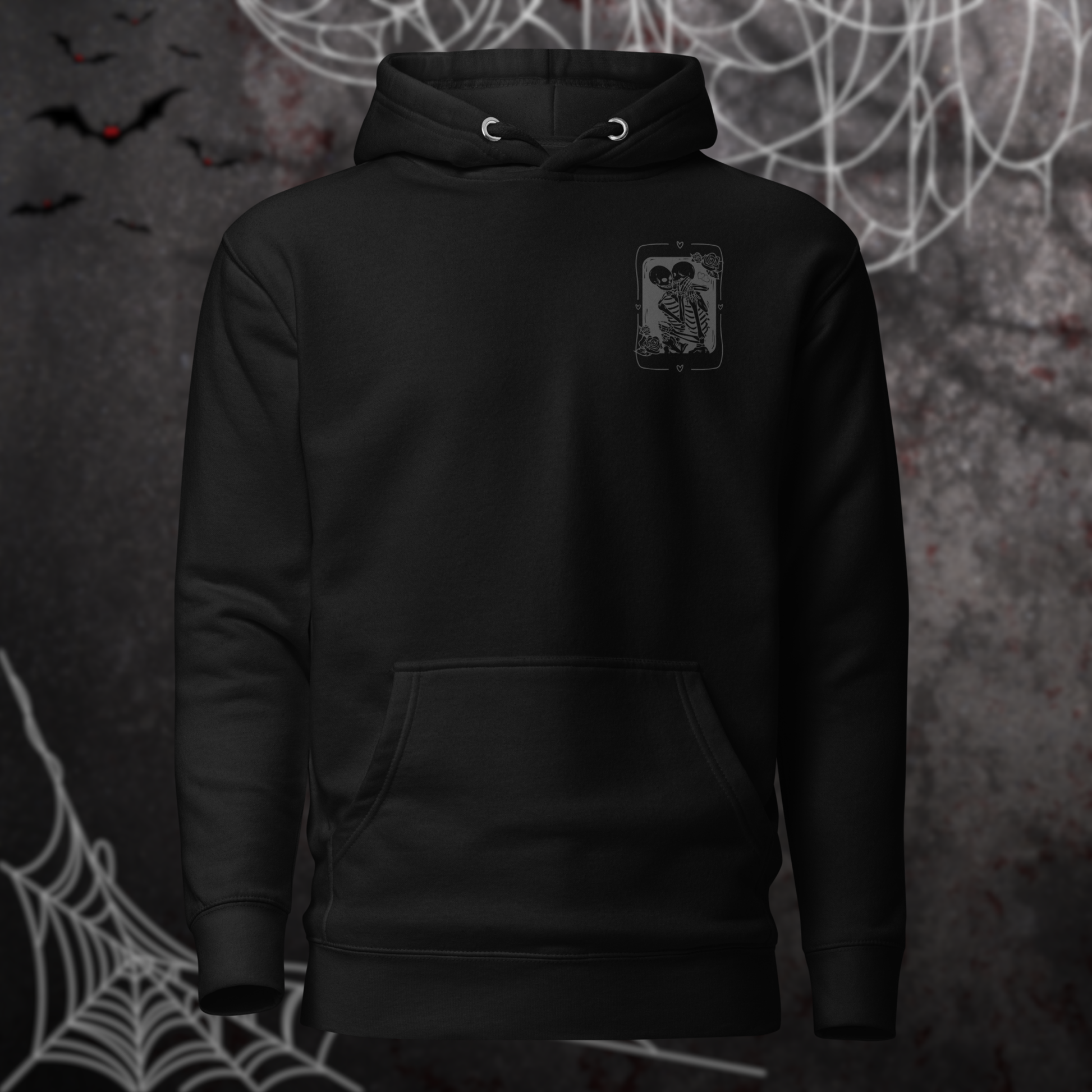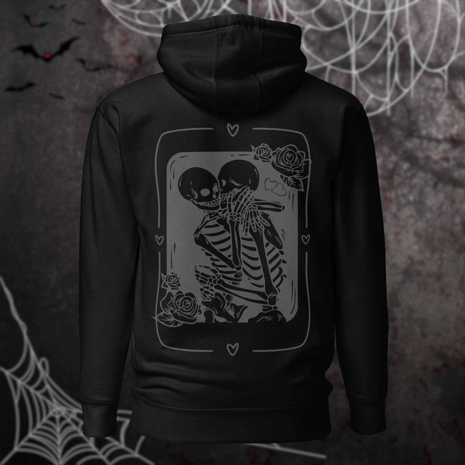 Feiere die Liebe auf die gruseligste Art und Weise mit unserem bezaubernden Skelett Liebesgeflüster - Hoodie! Zeige der Welt, dass Liebe niemals vergeht – selbst nicht im Angesicht des Unheimlichen! Schnapp dir deinen Hoodie und zelebriere die unsterbliche Liebe! 🖤💀