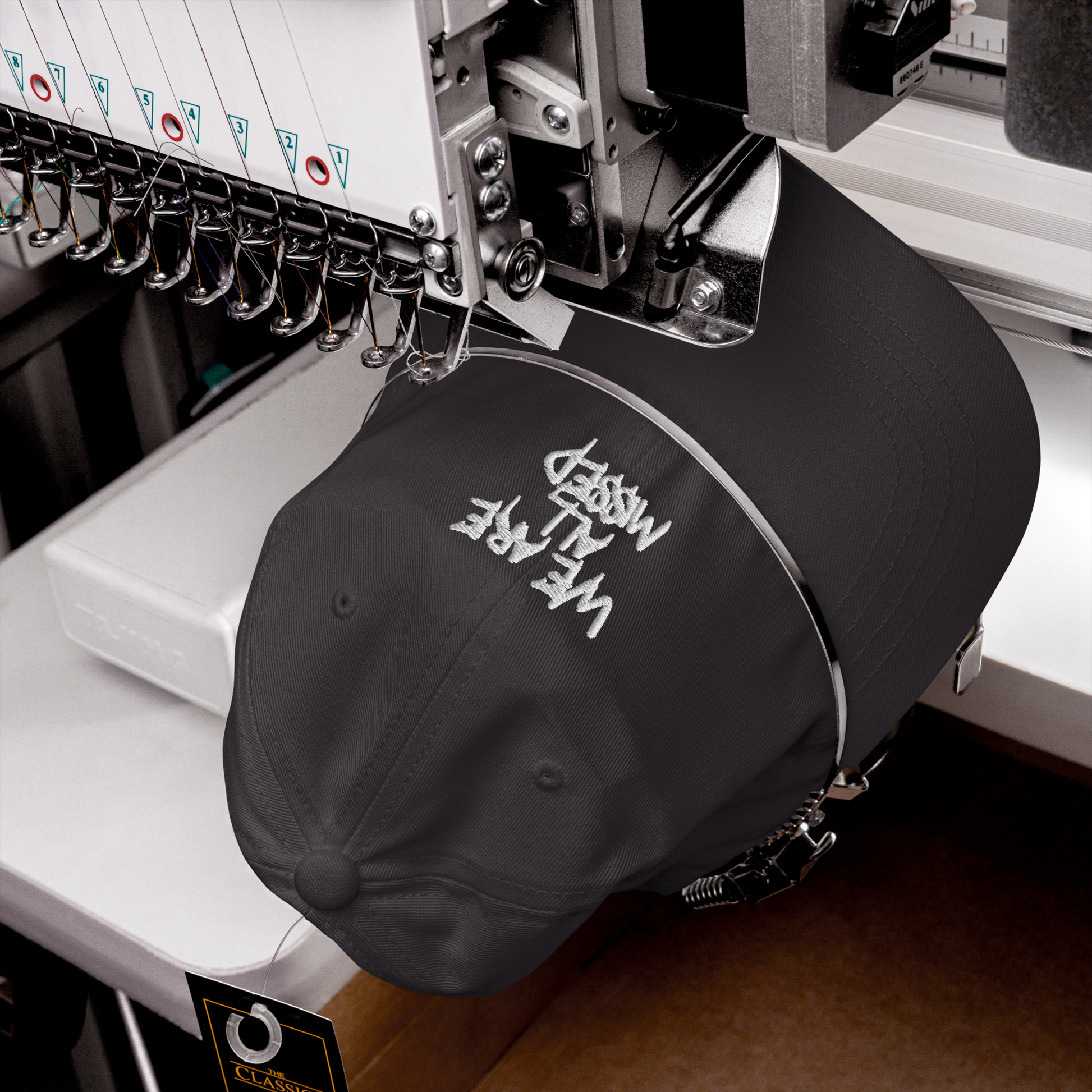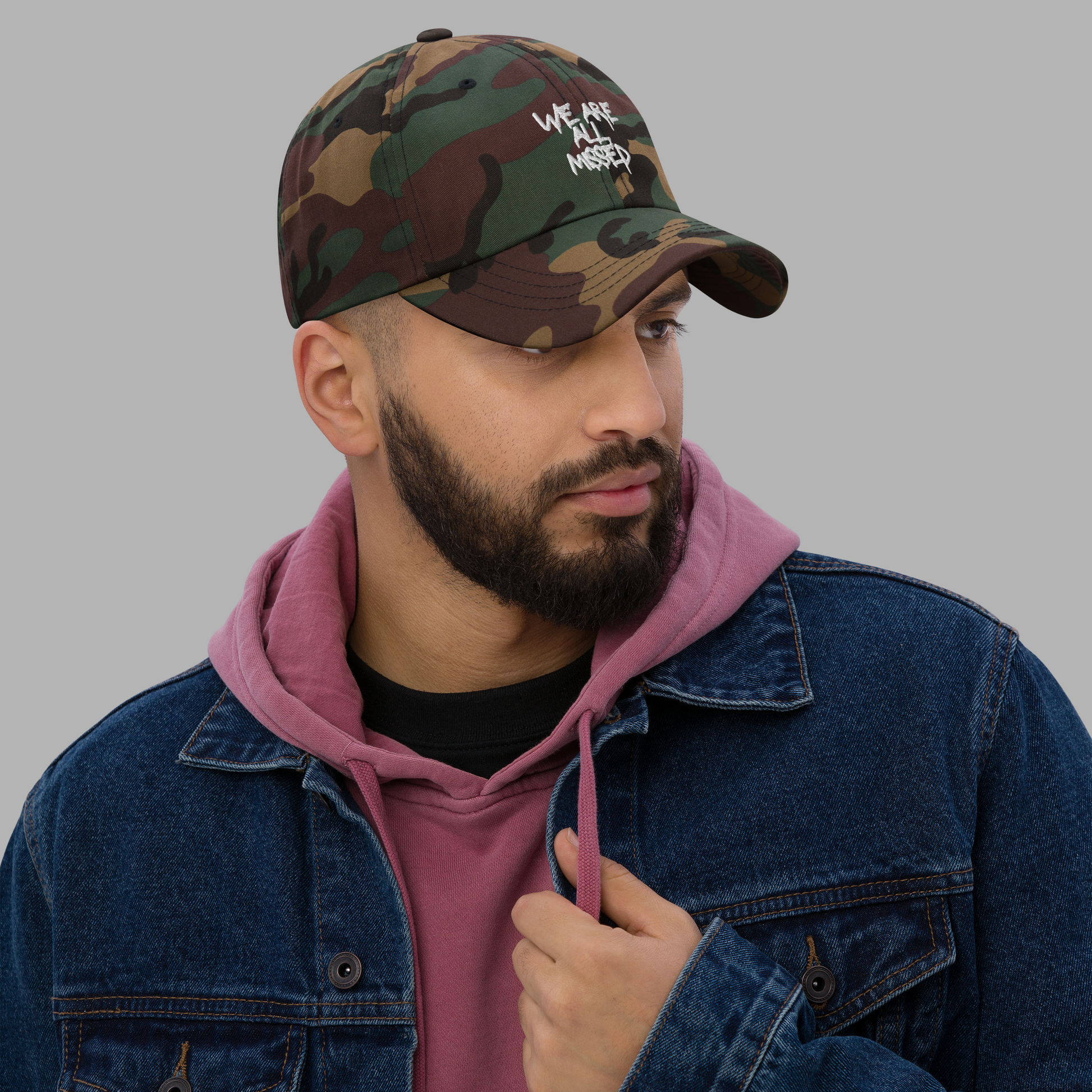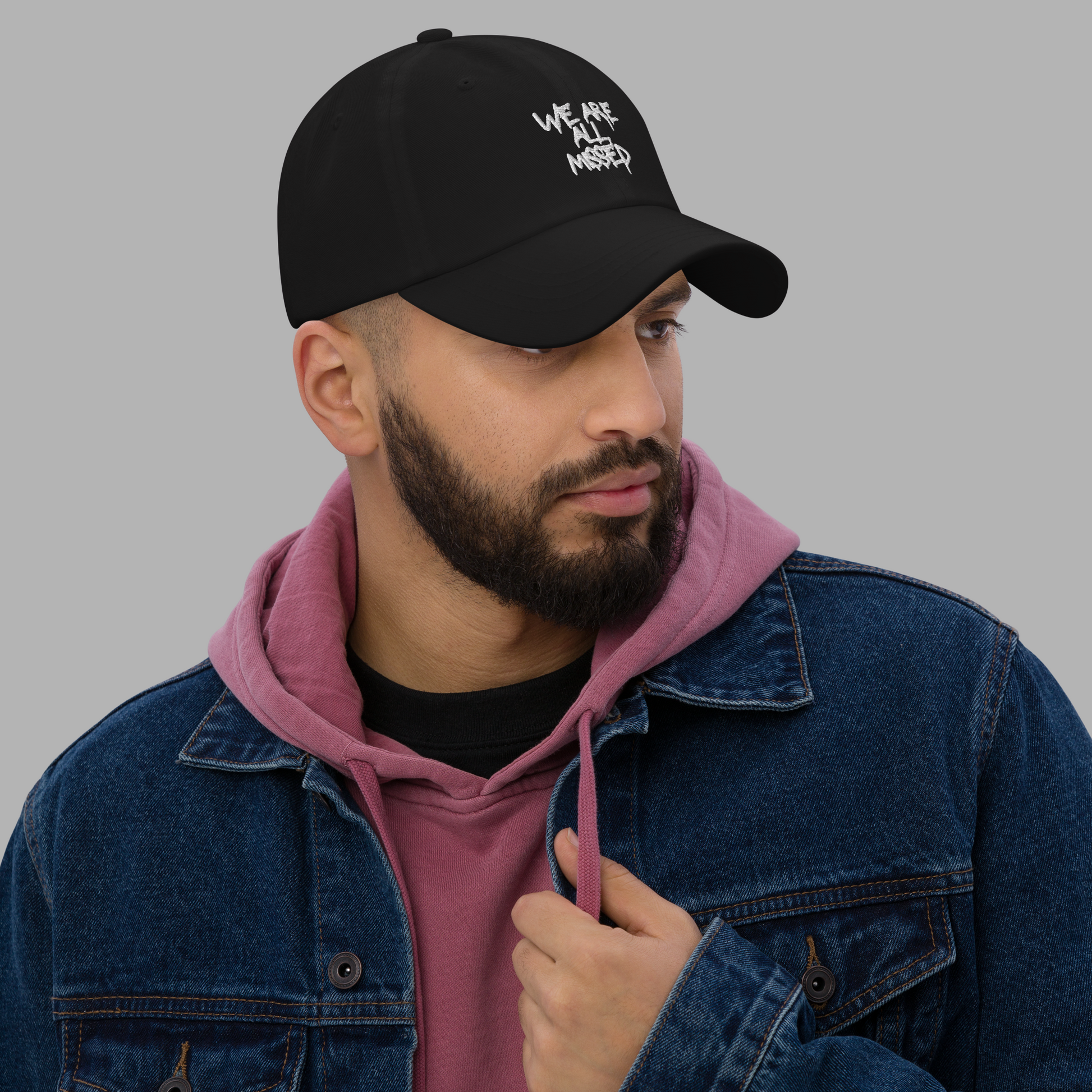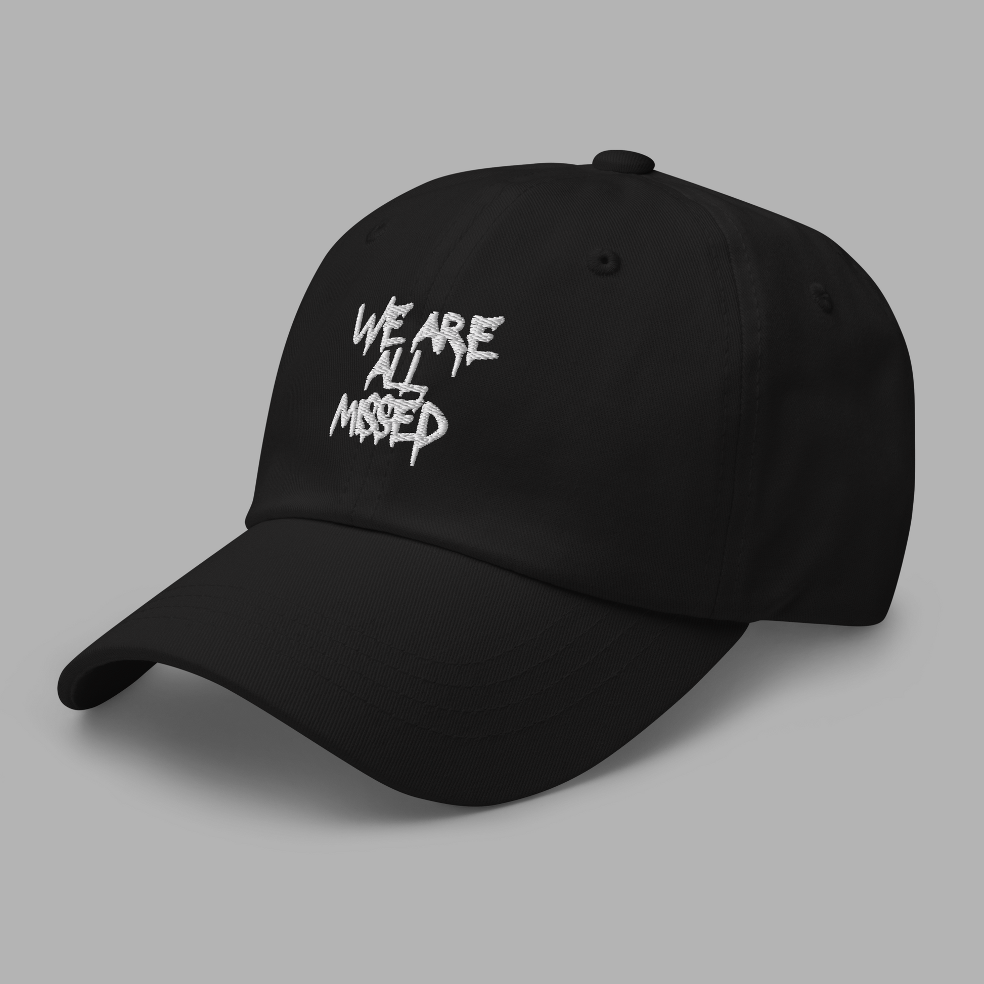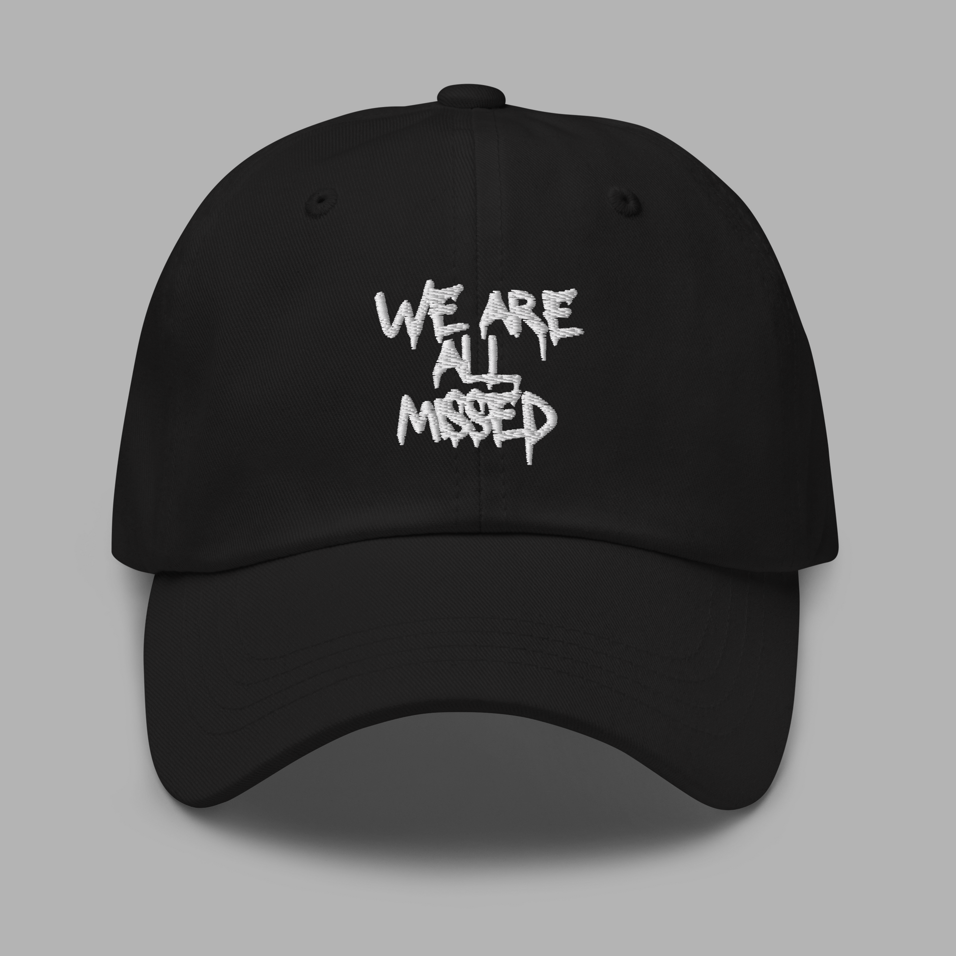 • WE ARE ALL MISSED-Stickerei auf der Front der Cap